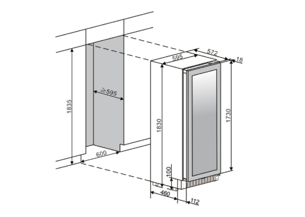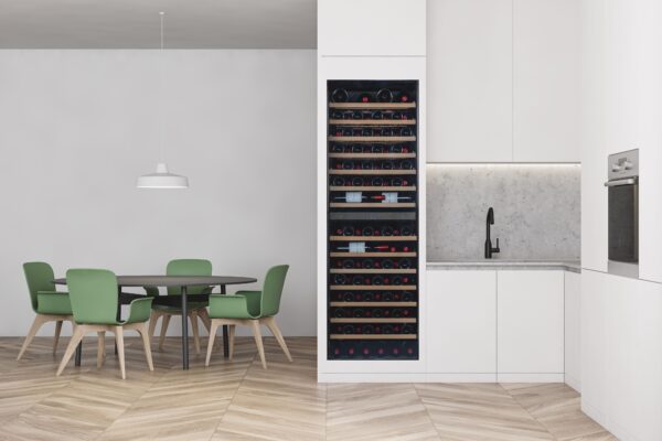 Built-in wine cellar with computerized temperature control. Suitable both for professionals, thanks to its large 120-bottle capacity and versatility, and for wine enthusiasts, as its attractive design makes it ideal for any space.