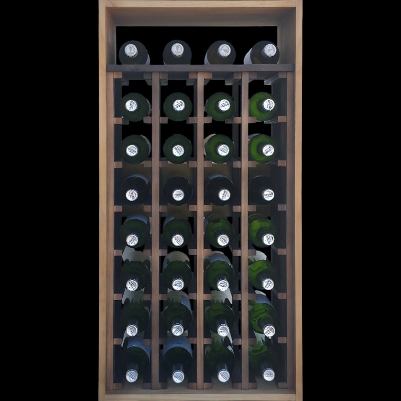 Modular wooden wine rack for 32 bottles. Elegant Monastrell design, stackable and ideal for home or professional wine storage. Sku 356061 and 376061.