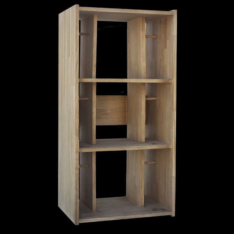 This modular wooden wine rack with cross dividers and compartments combines aesthetics and functionality. Made from light oak-colored pine wood, it is ideal for storing up to 39 bottles.